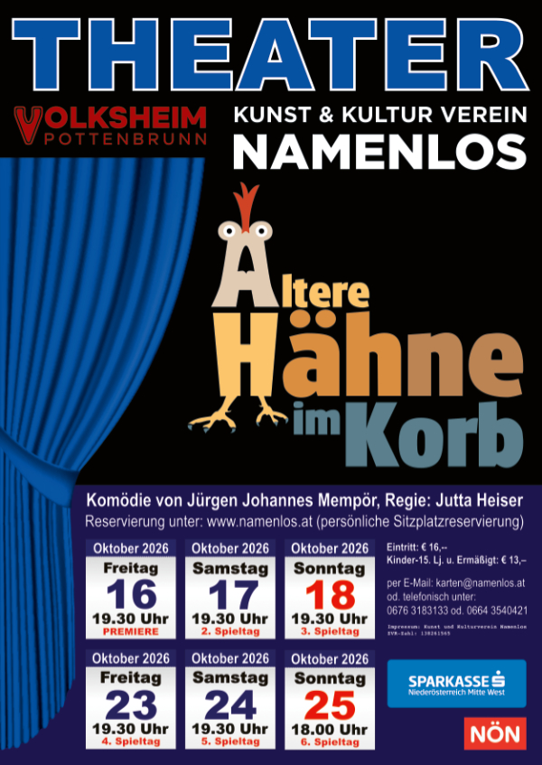 Allgemeiner Hinweis! Liebe Besucher, Freunde und Gäste unseres Theatervereines! Wir fertigen regelmäßig bei unseren Veranstaltungen, Aufführungen Fotos und Videoaufnahmen an und veröffentlichen diese auch auf unserer Webseite sowie auf Socialmedia Plattformen. Sollten sie sich auf einem Foto wiedererkennen und mit der Veröffentlichung nicht einverstanden sein, kontaktieren sie uns bitte. theater@namenlos.at